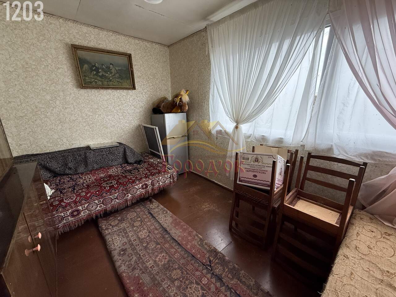 В доме две жилых комнаты ,вся мебель и бытовая техника остается.